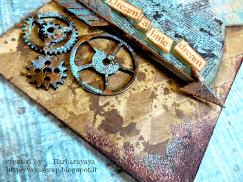 Come vedete ho usato anche altri tipi di materiale diverso dalla carta: per le lettere della parola FLY ho utilizzato Textures Surfaces Ranger sughero e cartone ondulato! Il mio piccolo Bird Crazy se guardate attentamente ha subito una modifica: anche il suo piccolo becco è di cartoncino metallizzato!