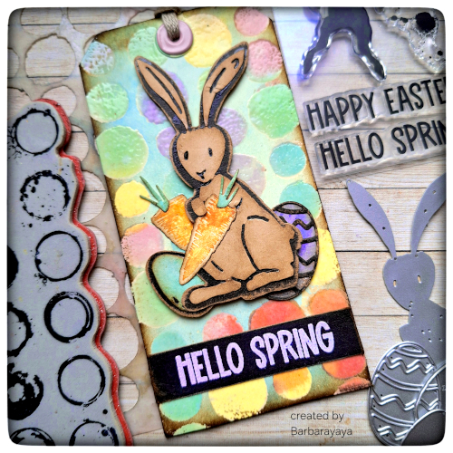 I chose food, specifically two Easter-related foods: carrots for the Easter bunnies and chocolate eggs! I created two tags inspired by the color palette proposed by Paula Cheney HERE on Instagram, I added some colors and used stencils and stamps from Tim Holtz Stampers Anonymous and dies from Sizzix. The colors today are all Ranger Distress Oxide Ink pads! I hope you enjoy them!