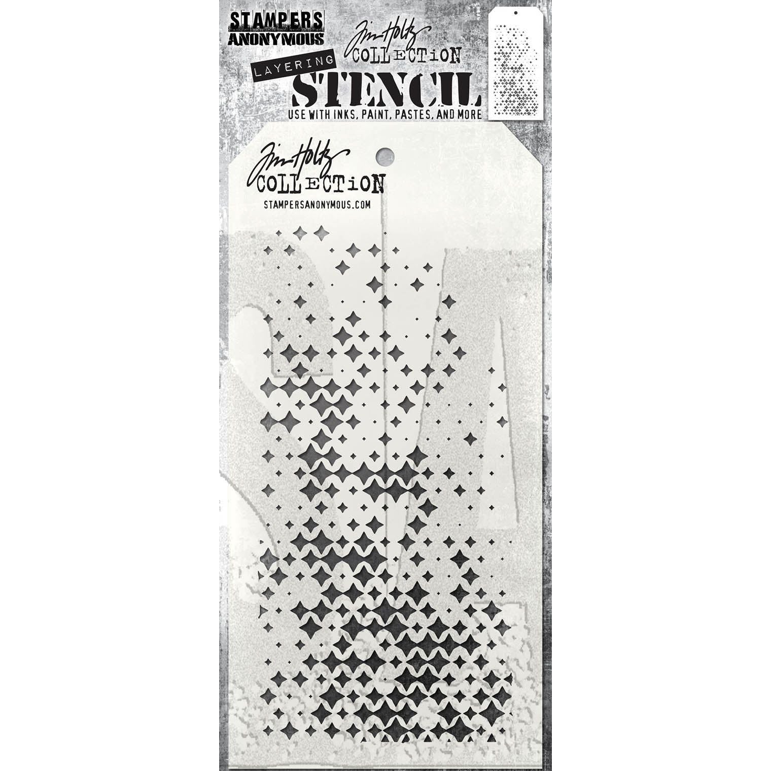 2) Ho completato gli sfondi utilizzando lo stencil Sparkle Fade di Tim Holtz Stampers Anonymous insieme alla Texture Paste Translucent e la polvere da embossing Liquid Platinum, un timbro di Paper Artsy Minis 122, usato con la stessa polvere.